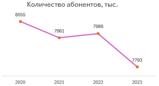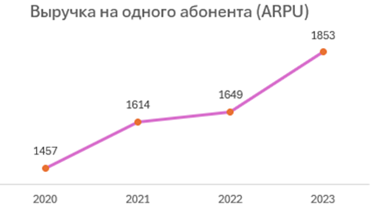 С 2022 года наблюдается отток абонентов к другим компаниям, однако несмотря на это показатель выручки на одного абонента (ARPU) растет.