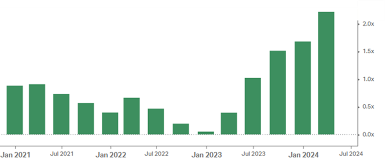 Акции компании показали феноменальный рост с начала 2024 года, на фоне такого роста и финансовых показателей, компания выглядит переоцененной.